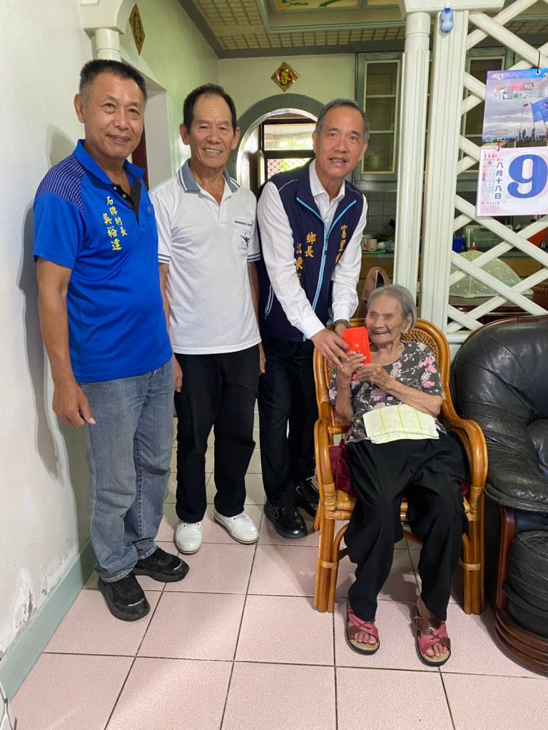 為傳達最誠摯的祝福,鄉長江東成特別於今(9)日親自拜訪富里鄉最年長的長者,致贈重陽禮金並祝賀長輩們健康長壽、福壽安康。其中包括,東里村百歲人瑞黃潘里玉女士,江鄉長除親送禮金外,也親口獻上祝福,場面溫馨感人。今年度本鄉共有約2,600名長者受惠;本年度重陽禮金發放標準為:65歲至69歲800元、70歲至79歲1,500元、80歲至89歲2,500元、90歲至99歲3,600元、100歲以上10,000元。