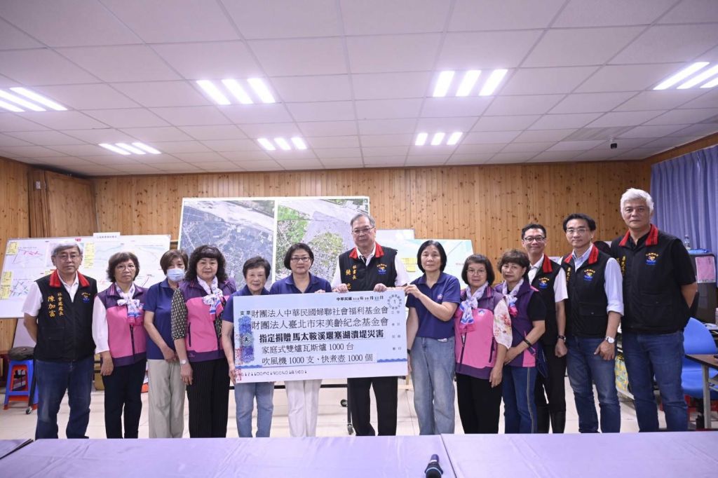 縣長徐榛蔚感謝各界愛心團體與企業踴躍響應,以實際行動表達關懷,捐贈多項家庭必需家電,協助受災鄉親重新建構溫暖家園。今日捐贈內容,財團法人中華民國婦聯社會福利基金會及財團法人臺北市宋美齡紀念基金共同捐贈家庭式雙爐瓦斯爐1000台、吹風機1000支及快煮壺1000個,財團法人中華基督教行道會新店教會亦發揮愛心,捐贈家庭式雙爐瓦斯爐567台、吹風機1000支及快煮壺700個,中華基督教行道會捐贈家庭式雙爐瓦斯爐433台。除公益行動外,也體現教會「愛人如己」的服務精神,攜手地方政府共同為災民送上安定力量。