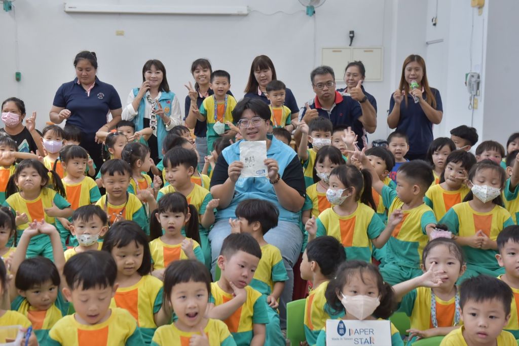 花蓮市幼兒園中班組今(15)日上午於市幼三樓禮堂舉辦「小小紙多星」主題活動,特別邀請中華紙漿廠的羅稚皓主任前來分享,帶領幼兒一同探索紙張的製作過程與再生利用的奧秘。魏嘉彥市長也親自出席活動,與小朋友們一起體驗手抄紙DIY,並肯定學校透過生活化課程引導孩子學習環保、珍惜資源的用心。