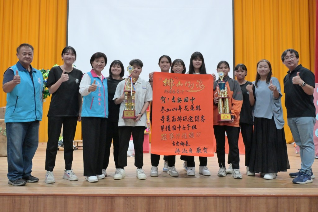 吉安鄉長游淑貞日前親前往吉安國中,為即將於10月24日參加「114年度全國中小學客家藝文競賽東區初賽」的同學們加油打氣,並為「114年花蓮縣洄瀾盃全國跆拳道錦標賽」榮獲5金2銀1銅、「第29屆全國青少年跆拳道錦標賽」再奪1金1銅與「花蓮縣奇萊盃排球邀請賽」國中女子組金牌得獎同學頒獎、貼紅榜祝賀,嘉勉吉安鄉的孩子們文武兼備再展亮眼好實力。