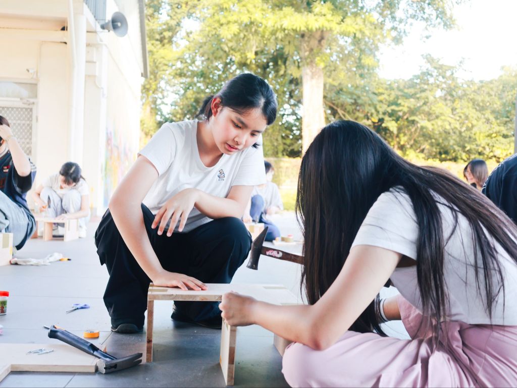 木工體驗帶領學員親手量測、組裝與敲打,在安全指引下完成木工單元作品,並以共創方式把個別構想組合為一件件空間裝置。透過實際操作與完成作品的歷程,女孩們突破「木工只屬於男性」的既定印象,也意識到技術與設計能力皆可透過練習養成。