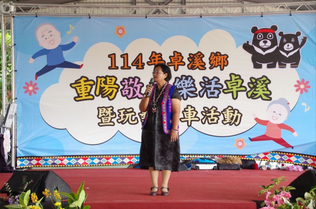 鄉長田桂花表示,重陽節不僅是傳統佳節,更是提醒社會尊敬長輩、珍惜親情的重要時刻。藉由此次活動,不僅表達對長輩的感謝與祝福,也讓社區民眾更加團結,共同營造有愛、溫暖的在地文化,更感謝花蓮縣政府-縣長徐榛蔚,本鄉地處偏遠,為讓藝文資源帶進卓溪鄉,縣府長年推動「藝術下鄉及體驗」計畫,今年再次透過玩藝列車,將多元豐富的表演藝術帶進卓溪鄉。