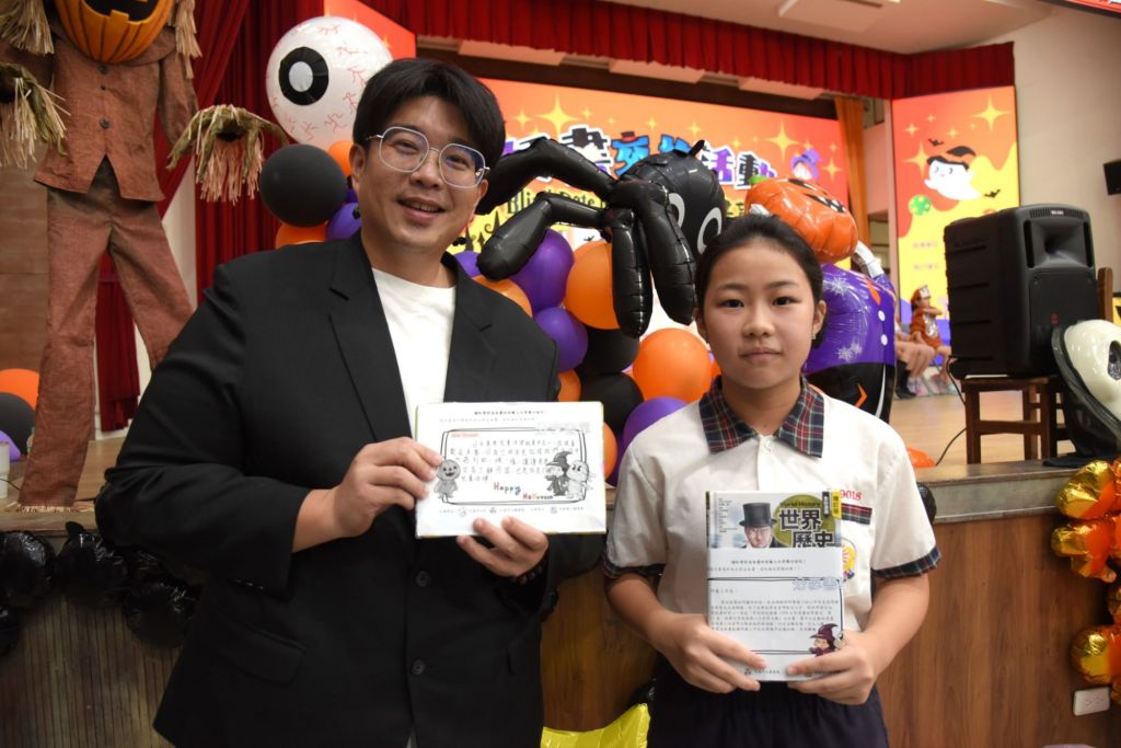 校長許傳德表示,學校推動「Blind Date with a Book」的初衷,是希望孩子能主動閱讀,也學會讓書籍再度發光發熱。活動當天安排「萬聖小劇場」、舞蹈班帶動唱、創意變裝走秀、英語闖關與奇幻圖書館布置等豐富內容,現場氣氛熱烈。家長會副會長曾祥雲也特別出席,以胡迪的裝扮與市長及校長一同參與活動。魏嘉彥貼心準備1000份萬聖節糖果小點心,由各班導師帶領學生憑券兌換,為活動增添甜蜜與節慶氣氛。魏嘉彥希望孩子們在「書香加糖香」的幸福氣氛裡,留下美好回憶,也讓閱讀成為生活中最可愛的習慣。