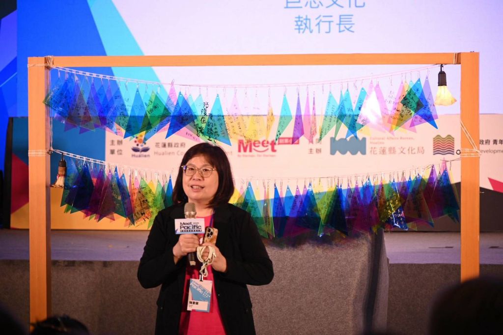 巨思文化執行長陳素蘭表示,今年是第三屆的Meet Pacific,一個月前花蓮光復鄉歷經無情的天災考驗,但也讓大家看見花蓮人最珍貴的力量,大家彼此互相扶持堅韌不拔的精神,也因這樣的力量讓身為策展團隊的我們,籌辦Meet Pacific透過創新與連結的力量,希望幫花蓮點亮新的希望之光,今日開幕式以「光的相遇」祝福及祈福的儀式,希望大家把對花蓮的關心與祝福,化為一片片的船帆,緊密相連聚集在一起,迎向新的啟程,期望以Meet Pacific作為地方、產業與國際的對話平台,讓創新從花蓮這片土地與生活中成長出的力量,讓世界看見花蓮的韌性與美好。