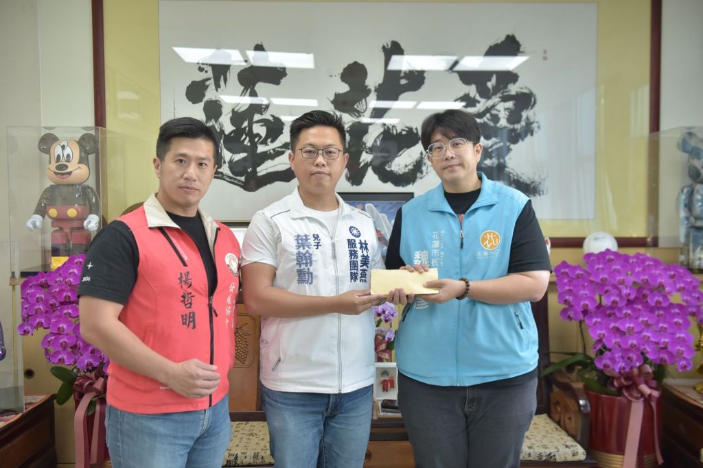 台南市議員林美燕秉持「同島一命、共度難關」的精神,近日號召台南婦女聯合會及多位在地善心人士,共同籌措愛心捐款新臺幣26萬2千元,盼能協助光復鄉洪災罹難家屬度過難關。昨30日上午,由林議員之子、服務團隊代表葉翰勳,偕同圓山慈善發展協會理事長楊哲明,專程前往花蓮市公所,將這份愛心善款轉交予魏嘉彥市長,請市公所協助轉贈予災民家屬。