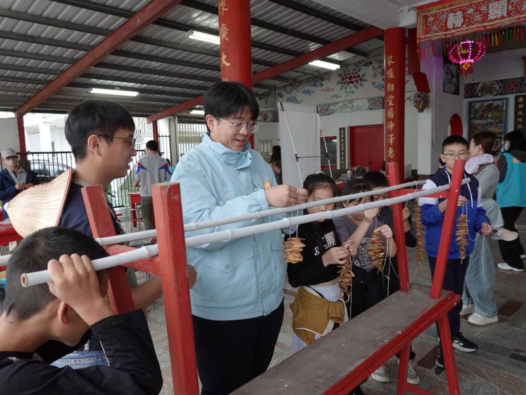 活動導覽老師楊昇表示,上午主要帶領大家進行導覽,透過趣味的方式讓參與者了解大陳的歷史、習俗與文化背景,因為今天來了不少小朋友,他特別以比較詼諧、簡單的方式,把原本可能比較生硬的歷史內容轉化成淺顯易懂的故事,讓大家能更自然接觸到這一段文化。他補充說,中午的活動包括炒薑、搓年糕、炒年糕,最後還有體驗「打漁鼓」等傳統樂器,讓大家透過親手操作感受大陳文化的生活脈動。