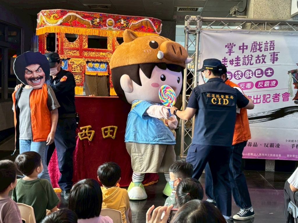 活動現場以童趣與教育兼具的方式呈現,並邀請花蓮地檢教保中心孩子們一同觀賞,由西田社布袋戲劇團特別帶來之反詐、反毒短篇布袋戲演出,藉由生動逗趣的掌中戲人物,模擬現今社會詐騙手法及新興毒品陷阱,提醒孩子們保持警覺、拒絕誘惑。