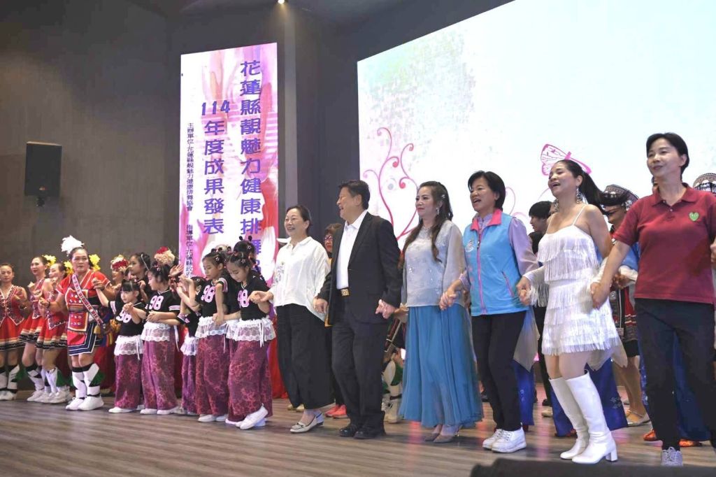 為推廣多元化的舞蹈運動,花蓮縣靚魅力健康排舞協會今(9)日於吉安國小活動中心辦理「114年度成果發表」,縣長徐榛蔚偕立法委員傅崐萁出席與婦女姐妹們同樂,花蓮縣議員黃馨、韓林梅、吉安鄉長游淑貞及多位貴賓也到場欣賞,婦女姐妹們跟著音樂自信的展現曼妙舞姿,現場氣氛熱絡。