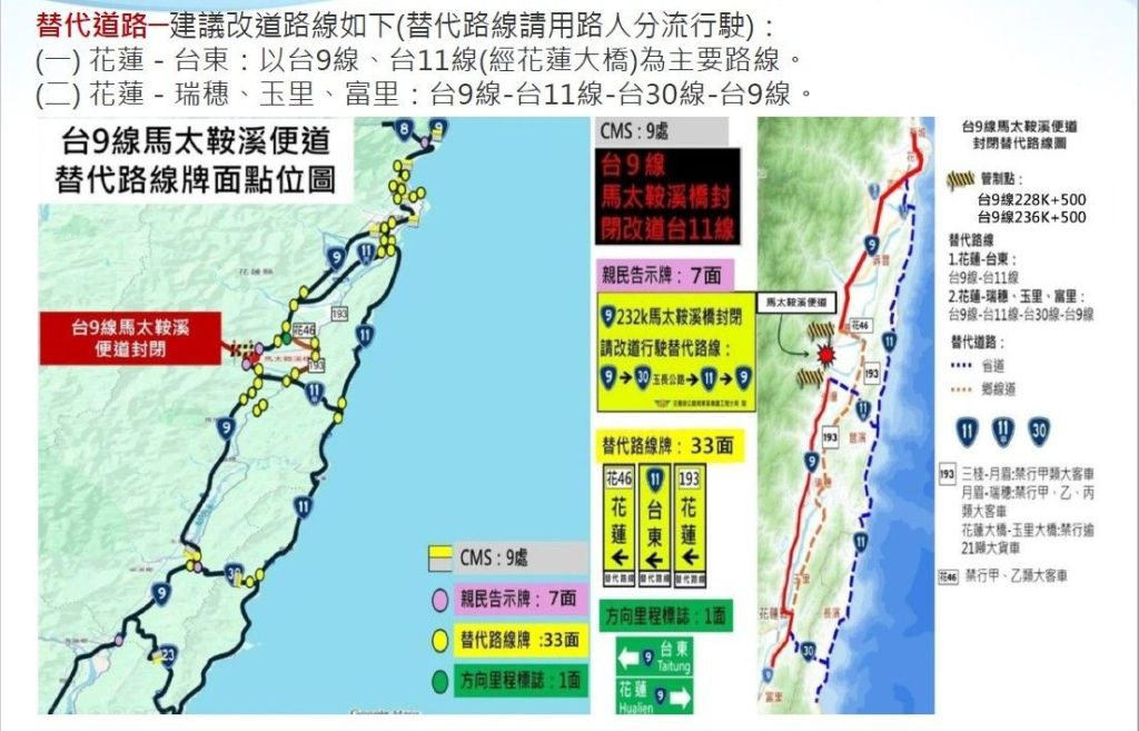 為維持南北向交通順暢,花蓮縣政府呼籲民眾依下列替代路線行駛: