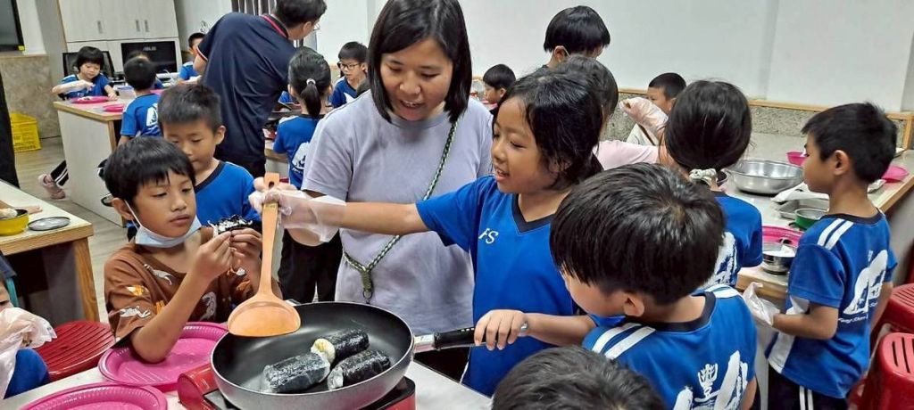 壽豐農會鄉以愛鄉愛校服務民眾,充分準備-壽豐米、在地雞肉、海苔、雞蛋、高麗菜絲、鳳梨、番茄,讓學生邊做邊學製作出色香味俱全的海苔手卷,還沒來得及拍攝成果照前,學生們就迫不及待大口品嘗,一咬下去米飯香甜、煎過的海苔捲酥脆爽口,散發出的誘人的香氣,學生們一口接一口,吃得滿臉洋溢著滿足笑容。