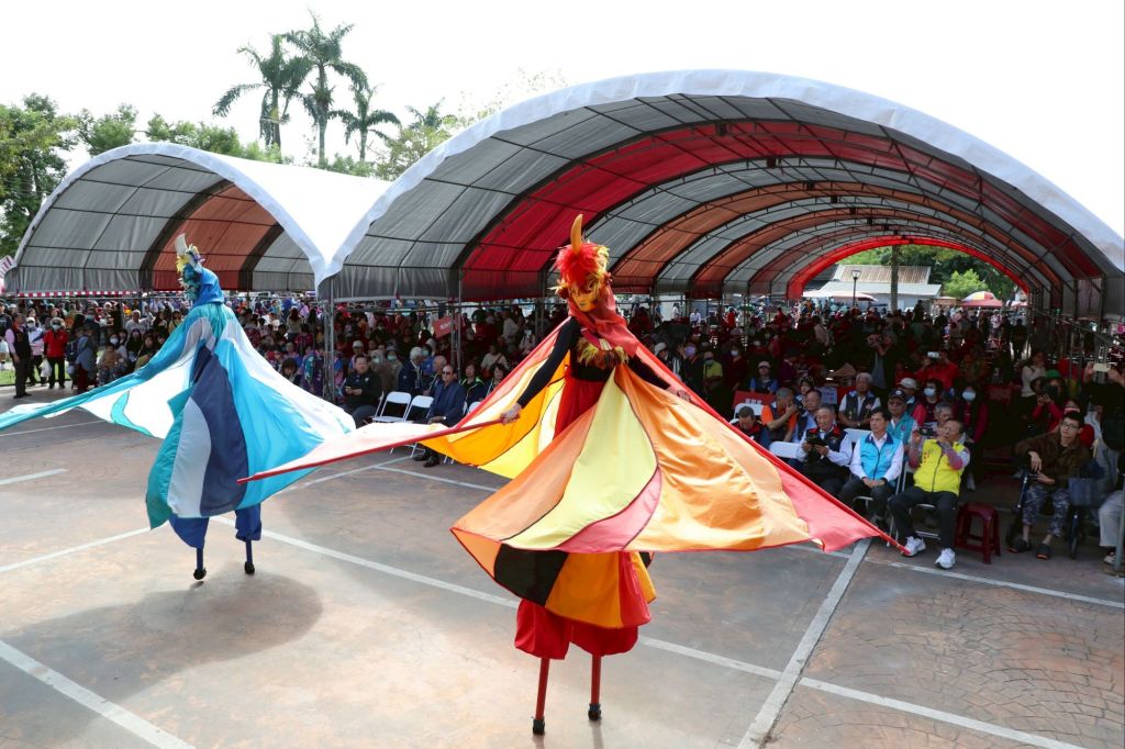此次「敬天惜地慶豐收」活動由鳳林鎮在地社團與學校、花蓮縣客屬會各分會及花蓮縣客家文化研究推展協會帶來創意進場表演,從服飾造型到隊形編排,都融入客家意象與地方故事,展現地方團隊的創意與向心力。現場並邀請身聲劇場帶來《希望之翼》演出,以及舞動人生舞蹈團、後山劇坊、彩虹舞蹈團及多組客藝表演團隊輪番上台,以戲劇、歌舞、音樂等多元形式,呈現客家文化在當代的多樣風貌,贏得現場觀眾熱烈掌聲。