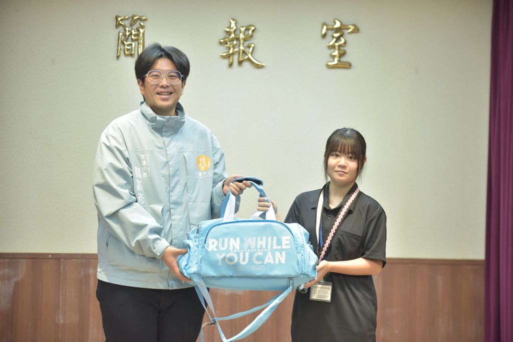 會中魏嘉彥市長特別送上今年花蓮太平洋縱谷半程馬拉松的運動隨身包,讓學生們又驚又喜;學生們也熱烈的和市長交流,詢問花蓮特色景點及美食,也分享27日晚間在東大門夜市大啖臭豆腐等美食的心得。八重山交流訪問團學生代表玉代勢わかな用中文向大家問好,介紹自己就讀的學校及興趣,希望能透過這次訪問可以更加瞭解花蓮的風土民情。
