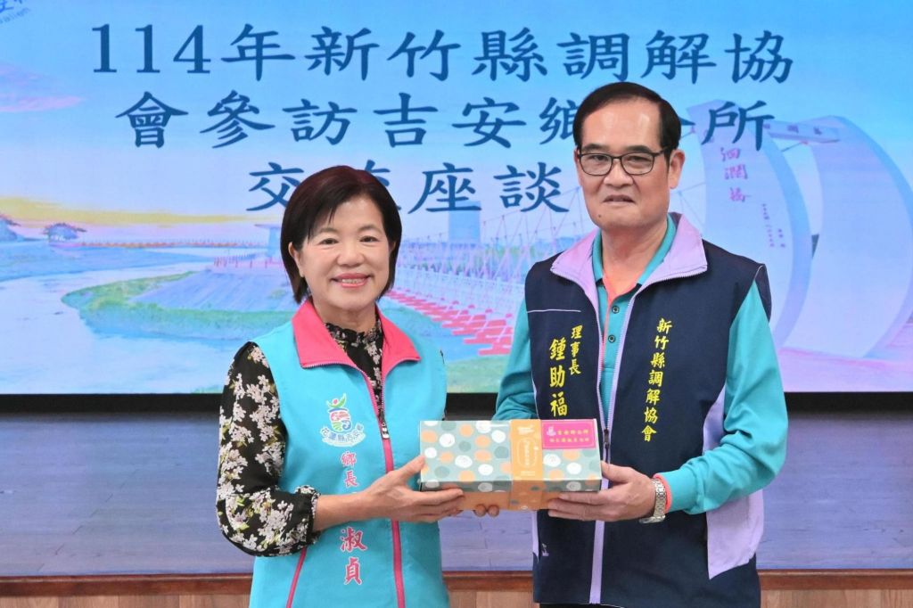 湖口調解委員會主席林益茂表示,十月份新竹湖口鄉長吳淑君甫率隊到訪吉安,此次交流再與新竹縣調解協會的六鄉委員座談,深感游淑貞鄉長帶領公所團隊,奠定跨區域互動交流、互相分享彼此動能與實務經驗,相信日後定能延續雙方為民服務精神,也促使兩縣各地「調解情感精進」。