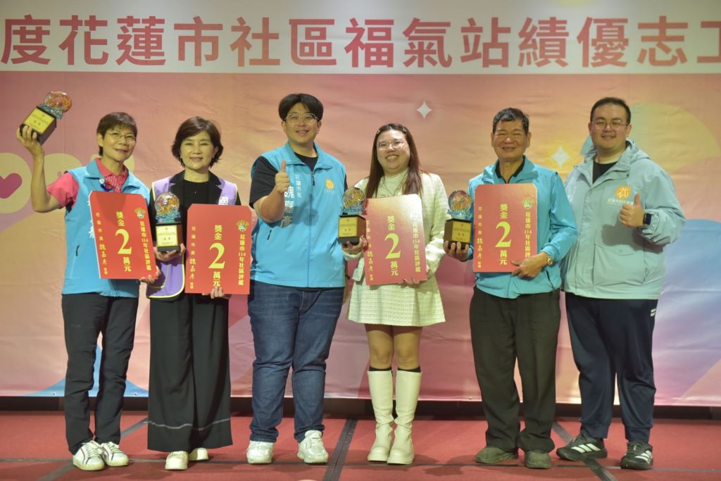 花蓮市公所所屬志工隊,包括行政室快樂志工隊、圖書館百合志工隊、殯葬所慈愛志工隊、社勞課樹與根志工隊以及原行課啦啦爸志工隊,平日協助市公所政策推動,魏嘉彥市長今天也藉著公開場合向公所志工們予以勉勵。另外114年花蓮市社區評鑑,市公所也在今天公開表揚獲獎社區,以鼓勵社區積極參與公共事務,藉由公私協力模式,共同打造友善宜居社區環境,得奬社區分別為優等社區:碧雲莊社區、民生社區、民運社區、北濱社區;甲等社區:國盛社區、國華社區、民孝社區、主學社區、主權社區、主睦社區。