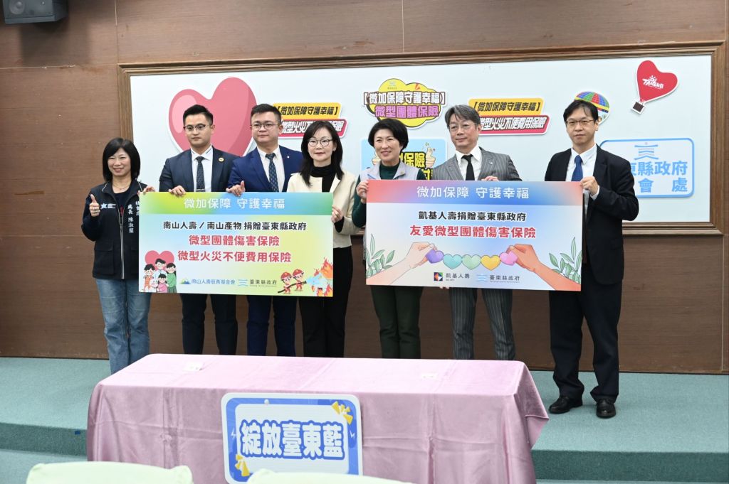 臺東在社會安全保障上更往前走一大步,臺東縣政府今(4)日舉辦「微加保障 守護幸福」微型保險感恩捐贈儀式,縣長饒慶鈴感謝凱基人壽、南山人壽、南山產物保險及南山人壽慈善基金會多年來與縣府攜手,為臺東弱勢家庭建構更完整的基礎保障。