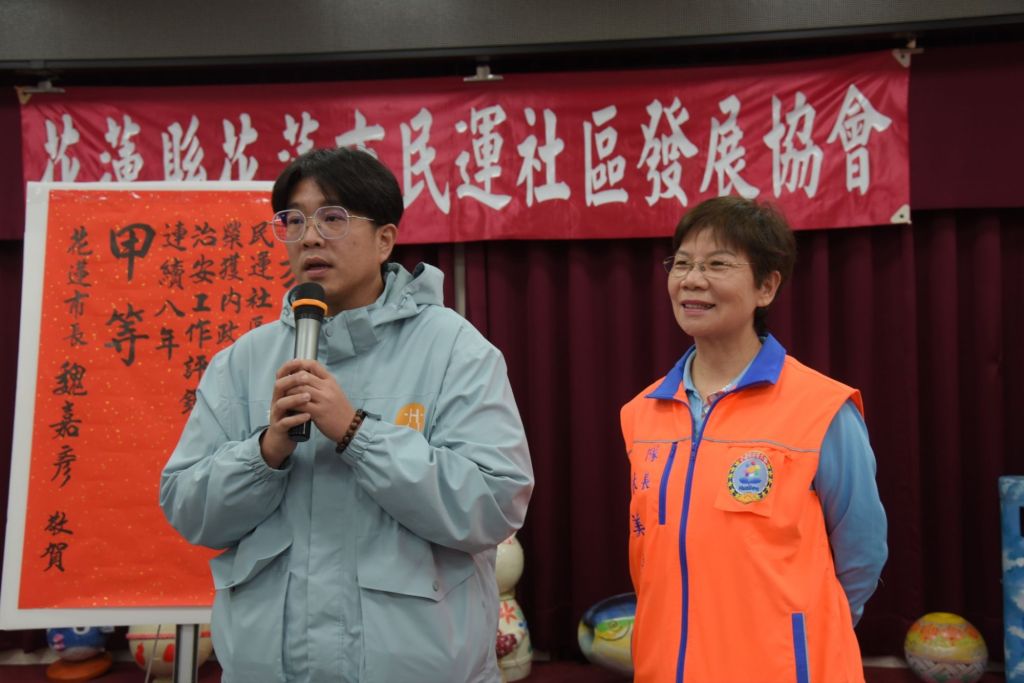 市長魏嘉彥昨11日晚上偕同民政課長潘堂盛前往民運里,與民運里長林美靜一起貼上象徵榮耀的紅榜,並向隊員逐一致意,同時送上數箱橘子,取「大吉大利」之寓意,感謝大家長年以來在治安維護、交通協助、環境巡查及防災動員上的付出。出席這場貼紅榜慶功宴的來賓包括花蓮市民代表會主席楊哲灃、副主席黃達祥,縣議員徐子芳、魏嘉賢辦公室主任何建宏,花蓮警察分局美崙派出所所長林楨嵎、花蓮縣政府北區服務中心副主任張治華、立委傅崐萁服務處主任邱惠敏、國聯里長林靜芬等多人。
