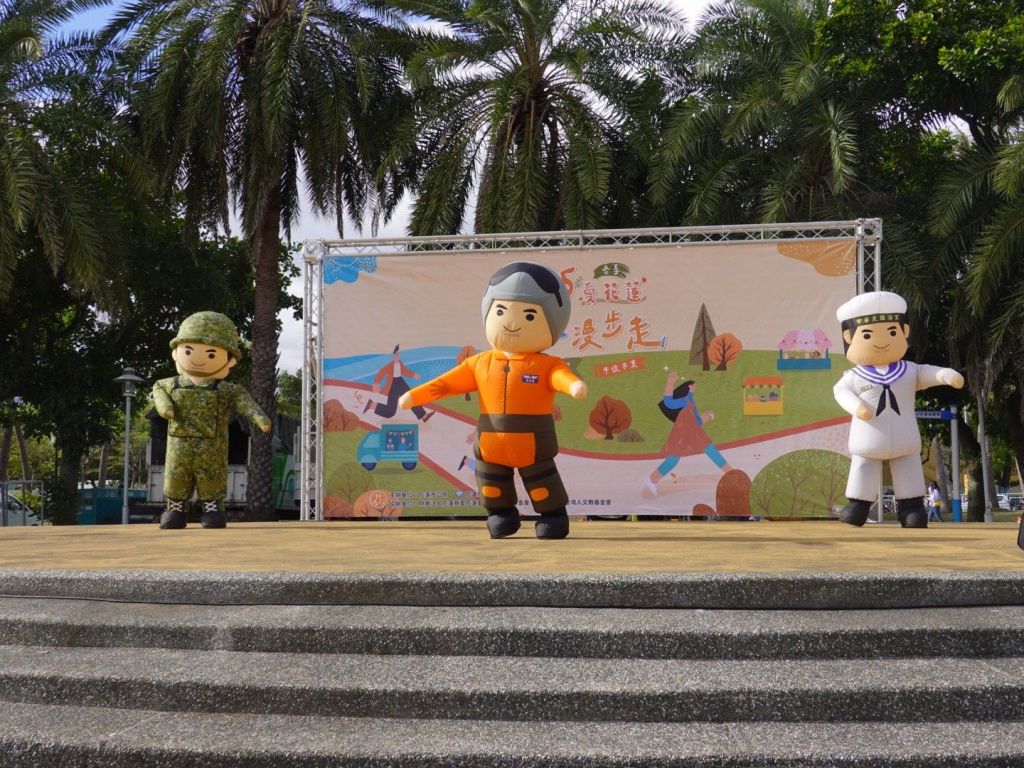 此外,現場也設置社福、防災、廉政、客語推廣及資源回收等宣導攤位,並有警政、國軍、消防、環保等單位,以及遠傳電信共同參與,透過互動方式向市民宣導公共政策與生活知識,讓健走活動兼具休閒、教育與公共服務功能。