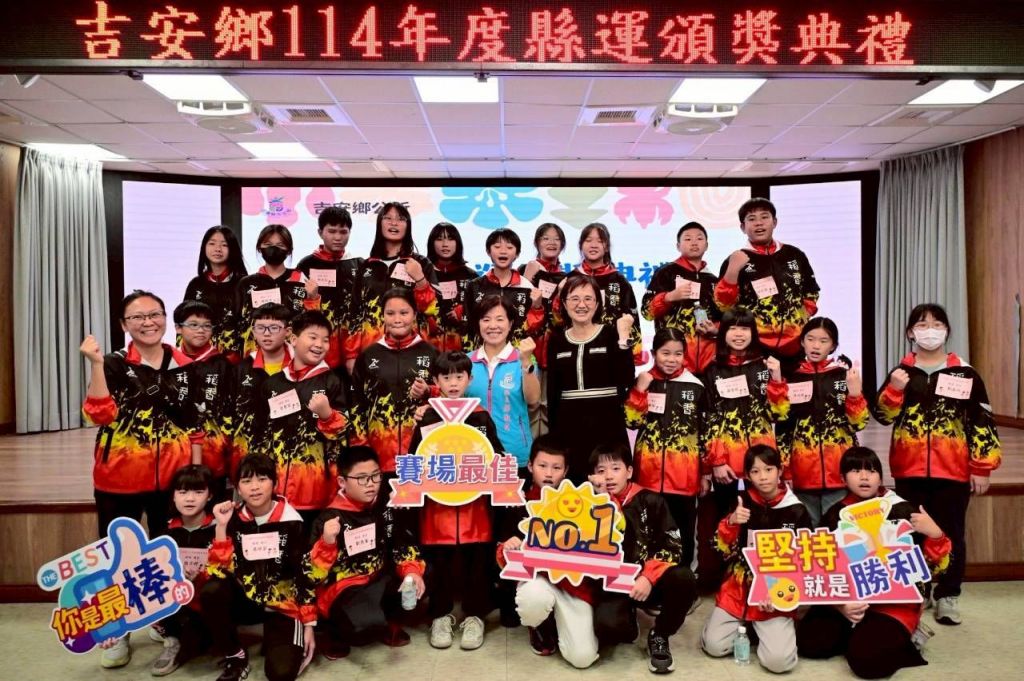 鄉長游淑貞表示,看到吉安鄉的孩子們與社會菁英在全縣競技舞台上嶄露頭角,內心充滿感動與榮耀。她感謝校長、老師與家長長期陪伴與支持,成為孩子們最堅實的後盾,也期勉所有選手持續築夢踏實、勇於挑戰自我,朝向更高層級的舞台邁進。未來鄉公所將持續投入體育資源與鼓勵措施,陪伴學子在運動與人生道路上穩健前行,共同打造幸福、共榮、永續的美好花蓮。