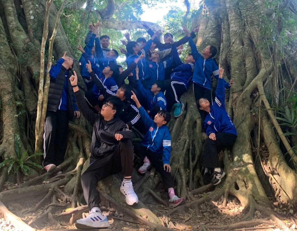 行程中特別安排參訪鸞山森林文化博物館(露天博物館),帶領學生走入布農族的文化場域。透過導覽解說,孩子們學習布農族表達感謝的語詞「Uninan(烏尼那)」,理解族群文化中對女性的尊敬與生活禮儀,並實際體驗為女性盛飯的傳統。同時,學生也認識敬山的儀式,以檳榔與米酒向自然表達感謝與敬畏,體會人與山林之間的深刻連結。活動並落實「零垃圾」的環保概念,從補給準備到行程管理皆強調減量、重複使用與妥善回收,讓文化學習與環境永續相互結合。
