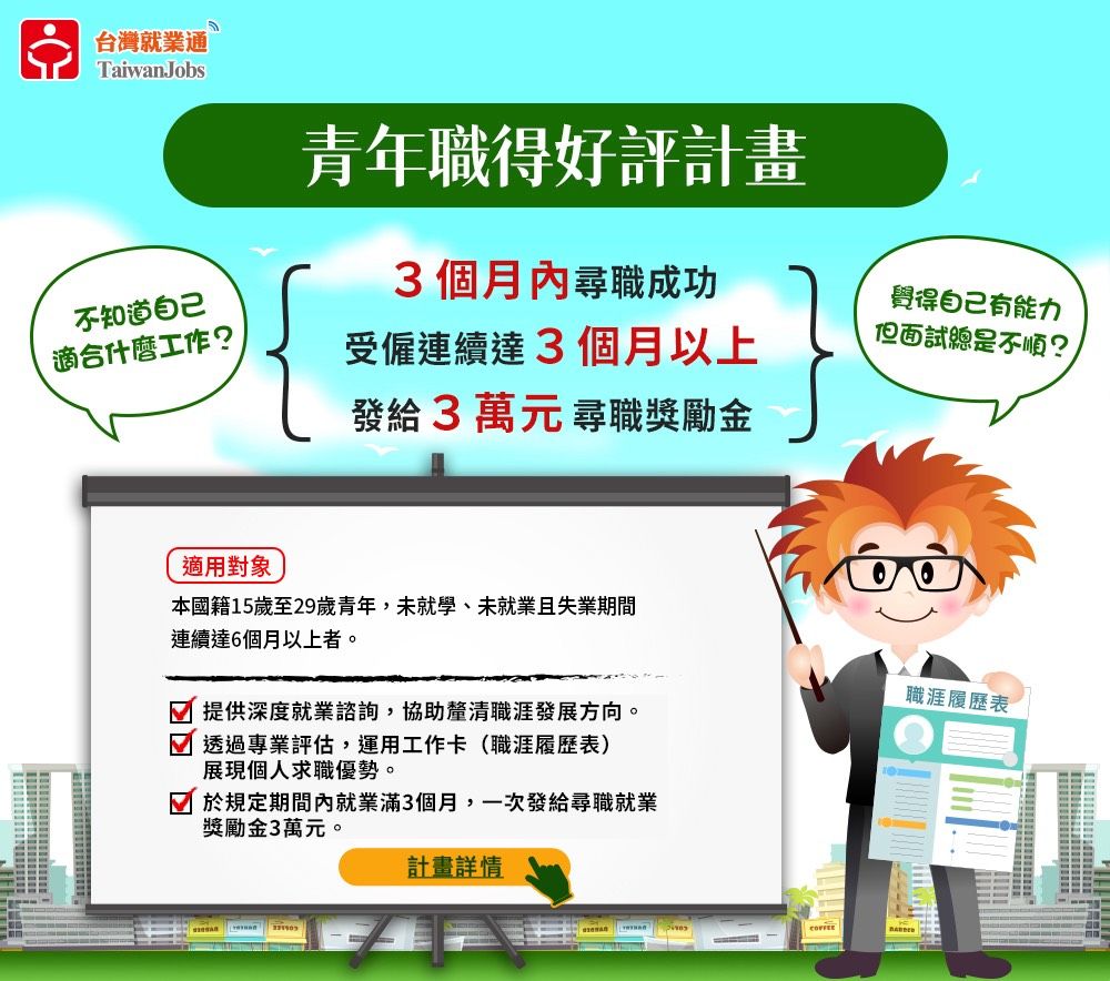 玉里就業中心主任張鼎盛表示,「青年職得好評計畫」旨在協助本國籍15歲至29歲對職涯感到迷惘的青年,透過深度諮詢與專業媒合,幫助他們在職場站穩腳跟。只要穩定工作滿 3 個月,即可領取 3 萬元尋職就業獎勵金。玉里就業中心將持續深耕基層,提供在地青年最具「溫度」的就業服務,相關服務資訊,請洽玉里就業中心,03-8882033分機7118周先生