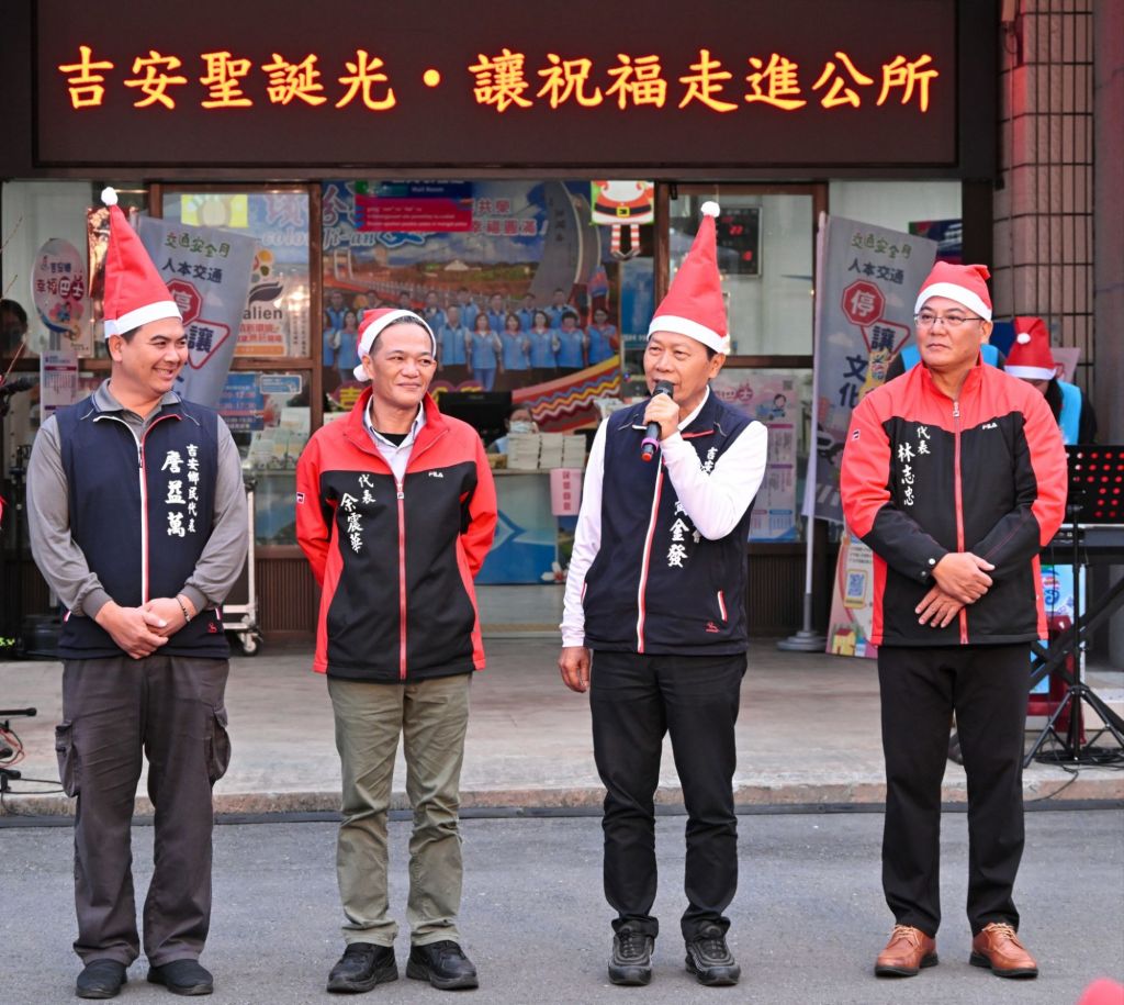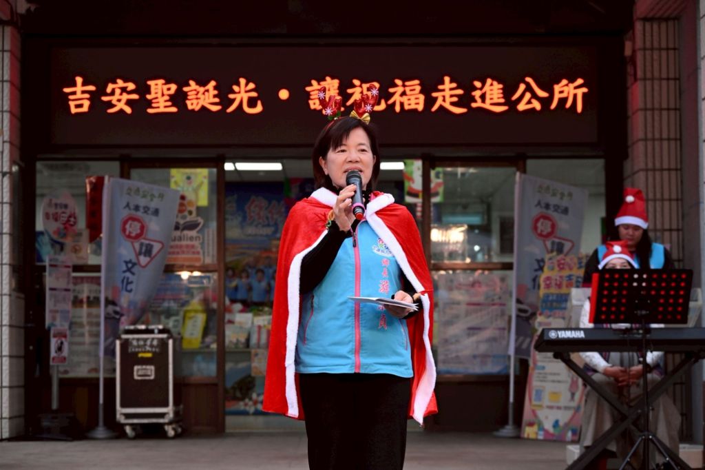 副主席黃金發表示,今年花蓮歷經天災,對產業與民生帶來挑戰,但花蓮人堅韌與互助的精神,相信能攜手共度難關。同時肯定游淑貞鄉長在繁忙政務之餘,用心籌辦此聖典活動,為鄉親帶來溫暖與鼓舞。部落頭目李毓書則分享,隨著聖誕佳節接近,各地報佳音活動熱鬧展開,但選在吉安鄉公務堂前辦理,教友們特別要感謝吉安團隊的用心服務,也分享給洽公民眾共享節慶氛圍,期盼大家都能平安健康。