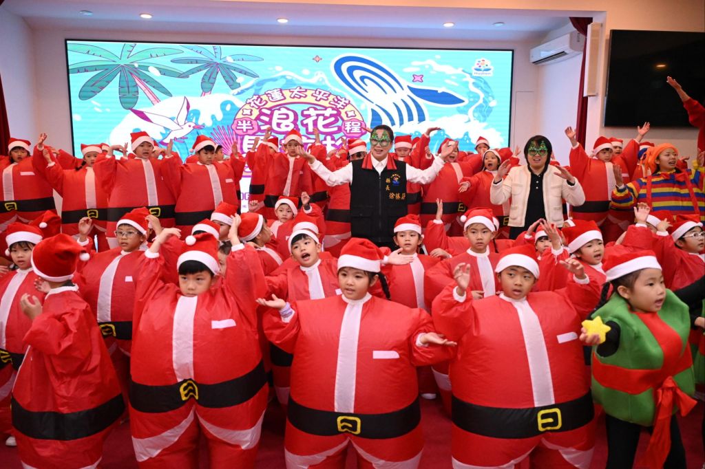 縣長徐榛蔚表示,孩子們純真的歌聲為大家帶來節日的喜悅,展現愛與分享的精神。歡迎幼兒園的師生們蒞臨報佳音,讓全縣府都感受到滿滿的幸福喜樂,更歡迎孩子們帶著爸爸媽媽享受縣府舉辦的「2025花蓮幸福聖誕城」活動,讓整個花蓮瀰漫在歡樂幸福的氣氛中。