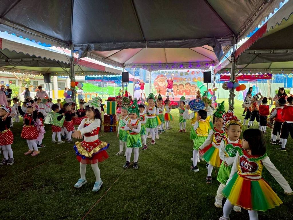 活動主軸別出心裁,校園內不僅佇立著「乖乖聖誕樹」,更處處可見客家花布與繽紛聖誕鈴聲交織的裝飾。孩子們穿上點綴著彩帶或禮物箱的特製服飾,稚嫩的歌謠在校園迴盪。這場「迷路記」不僅是戲劇主題,更是族群文化扎根幼教的具體展現。游淑貞感性表示,吉安鄉擁有深厚的文化底蘊,透過節慶活動引導孩子尊重多元族群,加上家長的溫暖陪伴,快樂童年正是送給孩子最珍貴的成長禮物。