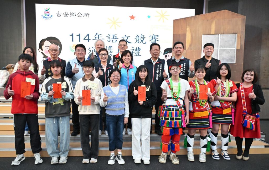 吉安鄉公所為表彰鄉內學子在114年「花蓮縣語文競賽」以及「全國語文競賽」中的亮眼表現,日前於吉安國小隆重舉行頒獎典禮。由鄉長游淑貞親自主持,公開表揚榮獲「特優」佳績的25項個人與團體選手,慎重逐一頒發獎勵金,肯定孩子們在語文學習上的深耕成果,期盼透過榮譽激勵更多學子投入語言學習與母語傳承,自信迎向未來挑戰。