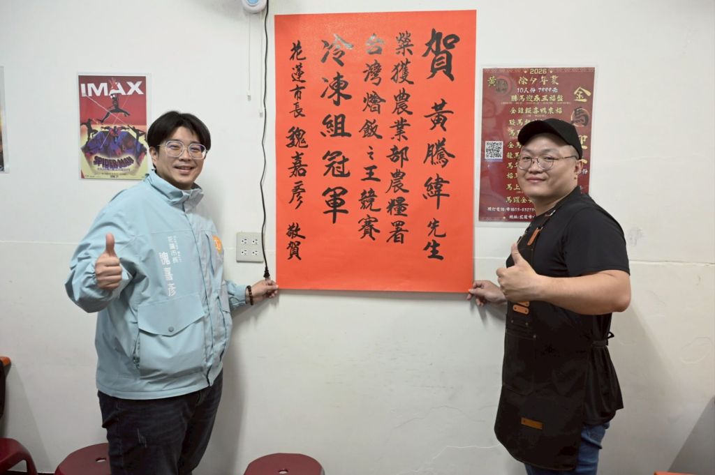 市長魏嘉彥表示,黃手功小炒以充滿情感與記憶的料理,在全國性賽事中脫穎而出,不僅展現花蓮在地餐飲實力,也讓更多人看見花蓮美食的深厚底蘊。此次特別到店貼紅榜,就是要與業者一同分享榮耀,為在地努力打拚的店家喝采。