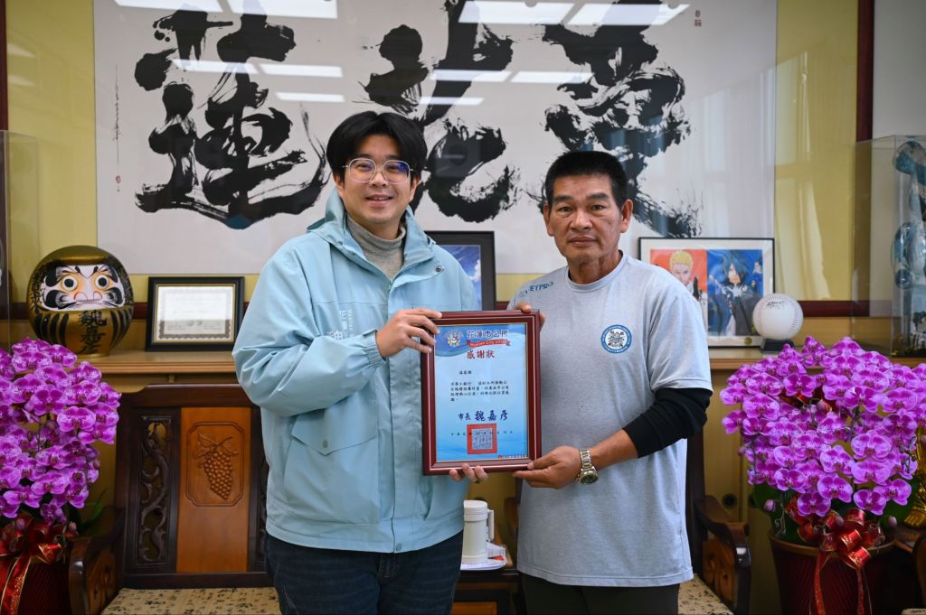 為響應公益、支持市政建設,淳華工程行及傑升工程行慷慨認養花蓮市路燈共 40 盞,合計捐贈金額 4 萬元,以實際行動協助市公所減輕公共設施維護負擔。市長魏嘉彥於今(19)日於花蓮市公所親自頒發感謝狀,表達誠摯感謝之意。