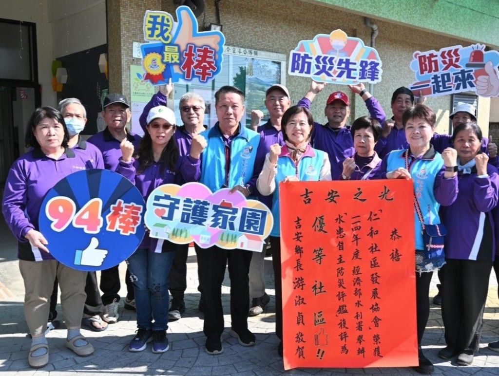 花蓮縣吉安鄉長游淑貞帶領公所鋼鐵團隊攜手社區共構強韌鄉城建設藍圖,歷年來吉安鄉多次獲得中央與縣府表揚肯定外,今年仁和社區發展協會也在經濟部水利署第九河川分署與花蓮縣政府的專業輔導下,獲得吉安鄉公所多元支持、全面積極協助「114年度(2025年)水患自主防災社區評鑑」,憑藉完善的整備作為與高度凝聚的社區動能,再度從眾多參選單位中脫穎而出,榮獲全國評鑑「優等」佳績,更是花蓮縣唯一獲得優等肯定的鄉鎮市社區,成為地方防災治理的典範。