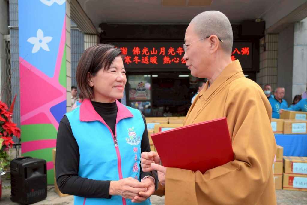 鄉長游淑貞同為佛光人吉三分會成員,對妙勳法師與月光寺師兄、師姐、志工們表達無限的感謝,提到無論是0403強震或是0923洪災,月光寺都在第一時間給予災民與受災家戶滿滿的愛與挹注。而每年這個時節,透過一碗碗暖胃又暖心的臘八粥,不僅紀念了佛陀成道日,更重要的是將社會的善念與溫暖傳遞出去。再次感謝月光寺師兄姊們不畏清晨刺骨的寒風與冰水,捲起衣袖親自熬煮暖胃的健康好粥,為千餘名鄉親帶來溫暖與關懷,更為新年開啟福氣滿滿的嶄新氣象。