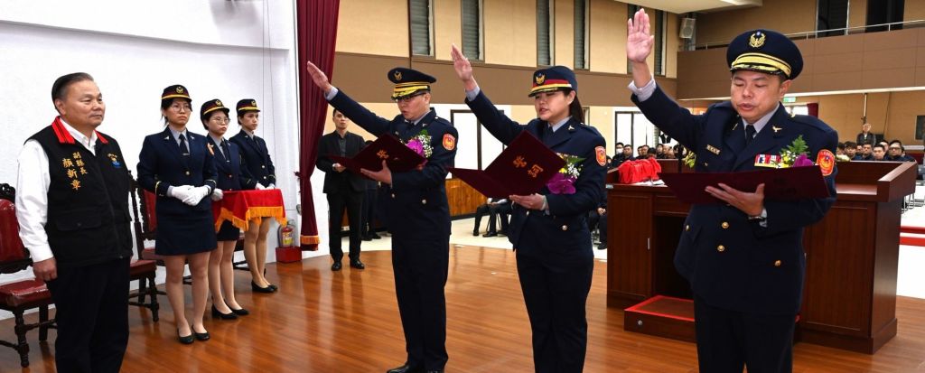 副縣長特別在典禮中先為晉陞二線四星的新任新城分局長賴楷淳、玉里分局長許竣閔授階,彰顯其陞職的榮耀,也代表著職務、使命及責任的加重,並主持交接印信、擔任新任分局長宣誓就職的監誓人及逐一介紹新任幹部。主任秘書洪政崴,中央警察大學交通管理學系69期畢業,由基隆市警察局第四分局分局長陞任;督察長林志弘,中央警察大學法律系61期畢業,由嘉義市政府警察局第二分局分局長陞任;吉安分局分局長黃清暉,中央警察大學行政警察學系71期畢業,由本局玉里分局分局長陞任;新城分局分局長賴楷淳,中央警察大學行政管理學系70期畢業,由臺北市政府警察局刑事警察大隊偵查第六隊隊長陞任;玉里分局分局長許竣閔,中央警察大學行政警察學系69期畢業,由臺北市政府警察局內湖分局督察組組長陞任。