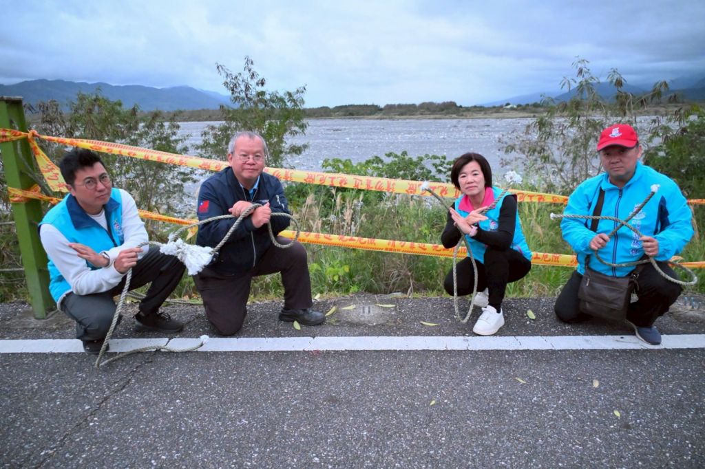 會勘過程中,游淑貞見到現場散落的安全繩,逐一撿拾,並與公所團隊一起將安全繩一段段綁牢,再固定於尚未遭竊的鋼柱上,作為臨時補強措施;同時要求團隊須儘速完成後續鍍鋅鋼柱訂製與裝設,確保民眾最基本的安全。她指出,竊賊變賣所得或許不足千元,卻需要公所投入數萬元經費重製修復。這不僅造成公帑損失,更會將前來散步、運動的民眾置於高風險狀態。
