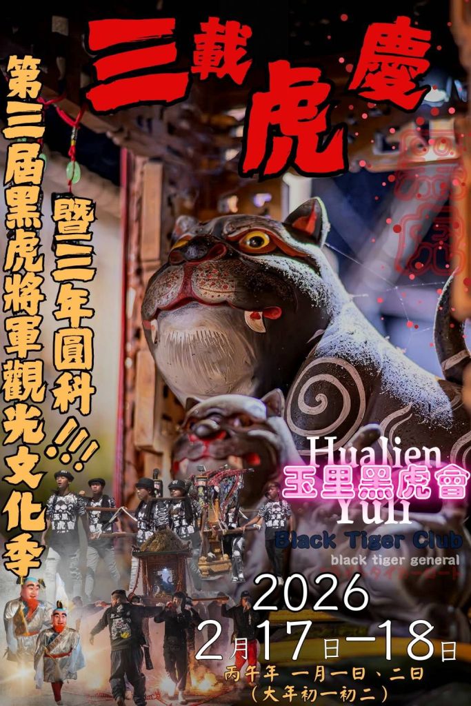 為推廣地方傳統信仰文化與觀光發展,由花蓮縣黑虎將軍技藝文化交流協會主辦的「第三屆黑虎將軍觀光文化季」,將於2月17日至18日在玉里圓環盛大舉行。活動結合宗教文化、民俗技藝與觀光特色,邀請全國民眾一同走進玉里,感受黑虎將軍信仰的深厚底蘊。