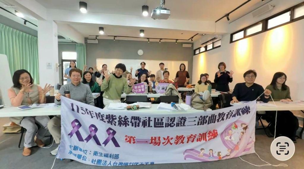 為讓地方政府與社區能更精準掌握紫絲帶認證三部曲的核心精神與實務操作,衛生福利部委託社團法人台灣福利厚生學會辦理「紫絲帶社區認證暨教育訓練計畫」,透過分區教育訓練與輔導,協助各直轄市、縣(市)政府社區初級預防業務人員(包含社區業務人員與家庭暴力防治業務人員),熟悉認證機制運作、指標定義與實際應用,並強化補助計畫撰寫、成果報告、自我成效檢視及認證申請等關鍵能力,全面提升地方推動社區防暴工作的專業度與一致性。
