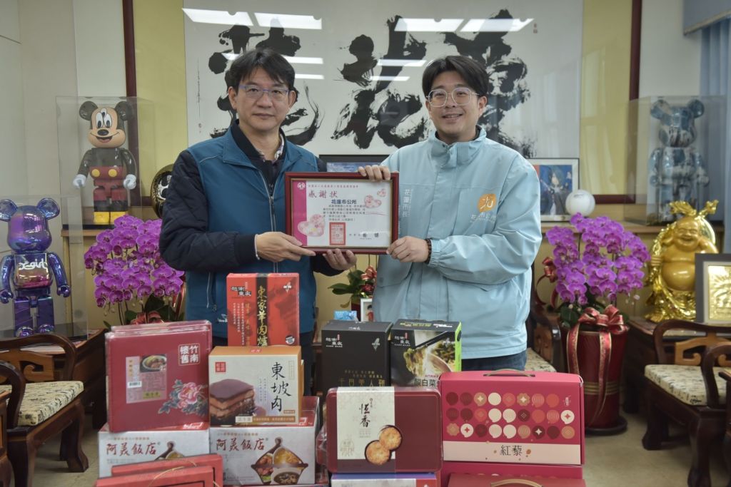 年節將至又遇寒冬,遠東百貨花蓮店精選知名品牌年菜及年貨禮盒共65份,昨29日下午在花蓮市公所偕同魏嘉彥市長致贈花蓮縣老人暨家庭關懷協會,由協會執行長蔡智全代表受贈,希望春節前夕能讓獨居長者一同感受過年氣氛。