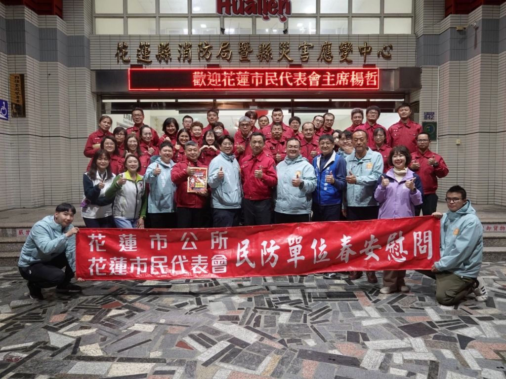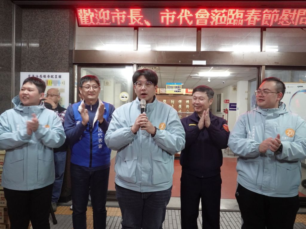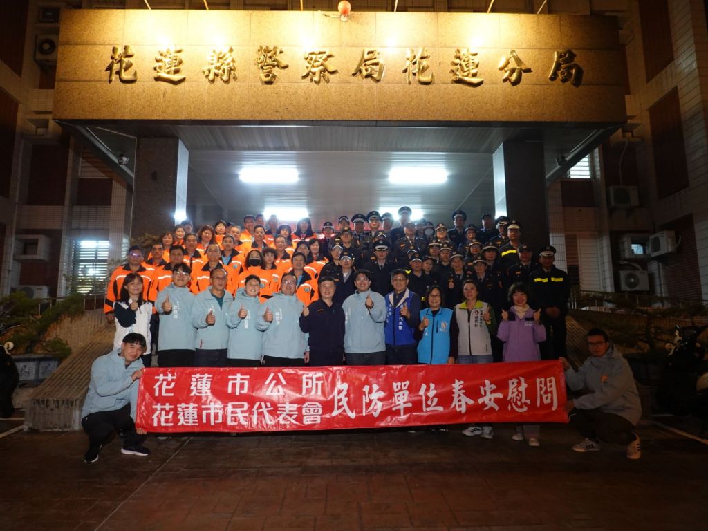 為表達對春節期間第一線安全維護人員的最高敬意與感謝,花蓮市長魏嘉彥昨29日晚間偕同花蓮市民代表會主席楊哲灃、副主席黃達祥等人,於春安工作開始前,前往警察、消防、民防、巡守隊、義警、義消等春安工作單位慰問,提前向堅守崗位的同仁致上謝意。