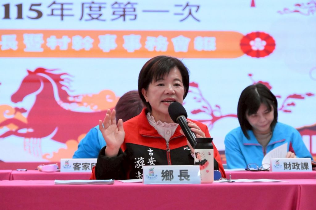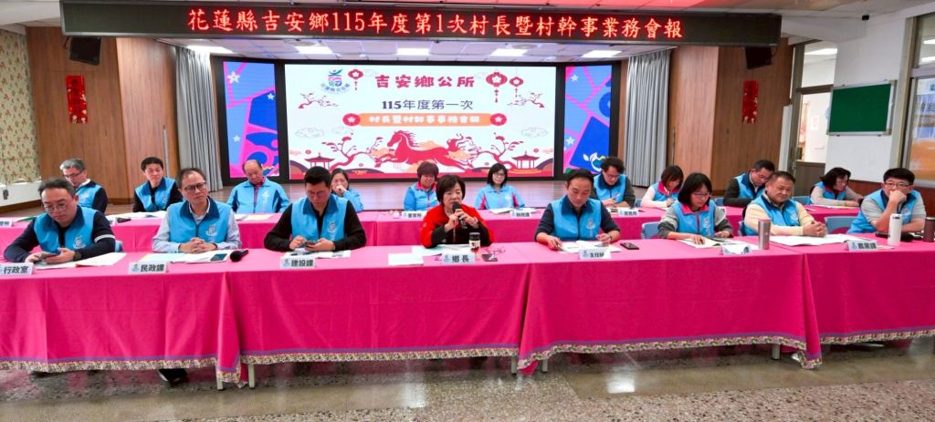 為深化基層施政、強化行政效能,吉安鄉公所每年定期召開四次村長暨村幹事業務會報,作為公所與基層治理夥伴的重要溝通平台。今年第一季會議於昨(30)日召開,由鄉長游淑貞親自主持,率領各課室所主管,與全鄉19村村長、村幹事齊聚一堂,盤點施政進度、回應在地需求,凝聚鄉政推動共識。