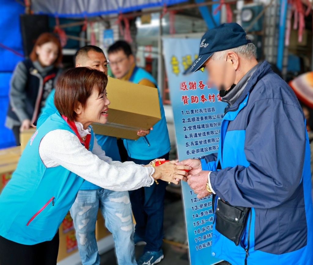 活動現場雖飄著毛毛細雨,現場氣氛卻格外溫暖。此次年菜發放對象為仁里村、東昌村的低收入戶、中低收入戶及中低收入老人,匯聚在仁里村長家前、依序排隊領取愛心年菜。年菜共200份,且內容豐富「五菜一湯」象徵團圓與祝福,期盼陪伴家戶暖心迎接新年。現場亦有寫春聯活動,紅紙與墨香交織出濃濃年味,長輩們手持春聯、笑容滿面,提前感受過年的喜悅。游淑貞也逐一向鄉親問候寒暄,並特別加碼致贈馬年限定祝福金幣,祝福大家新年健康平安、鴻運大發,現場洋溢著溫馨的人情氛圍。