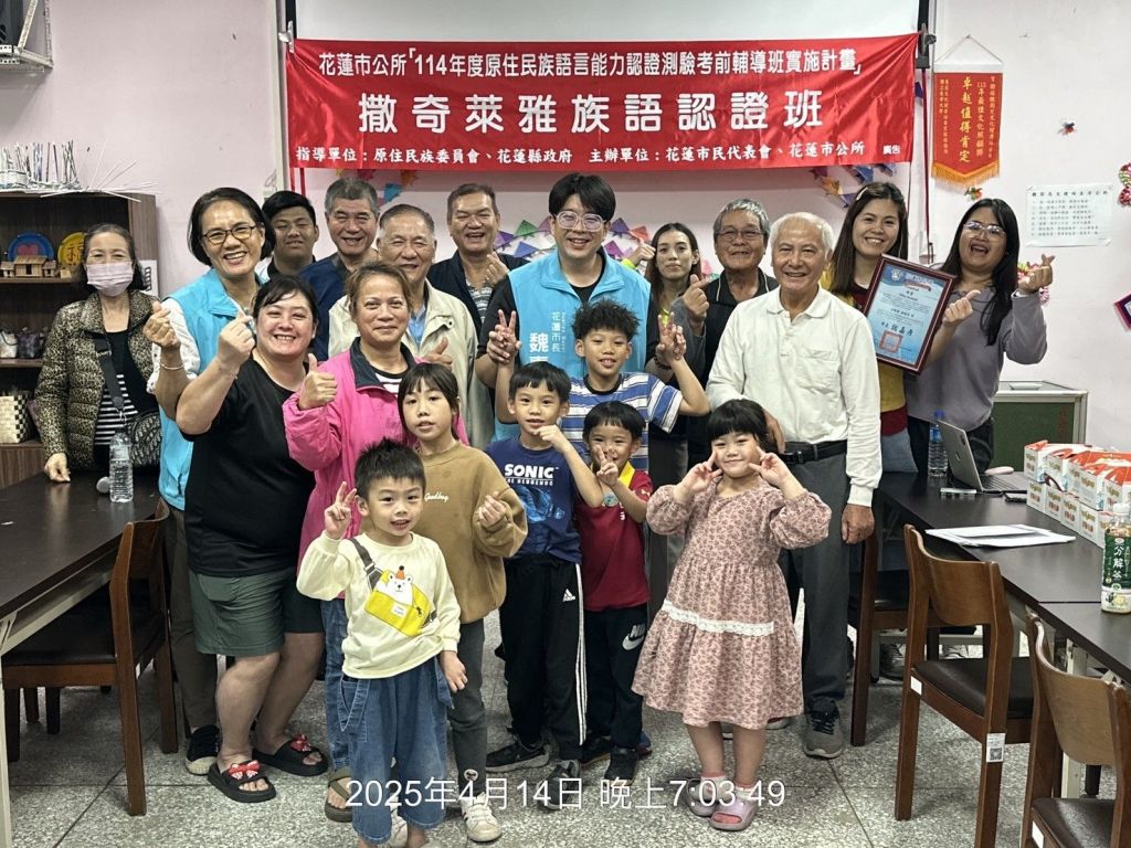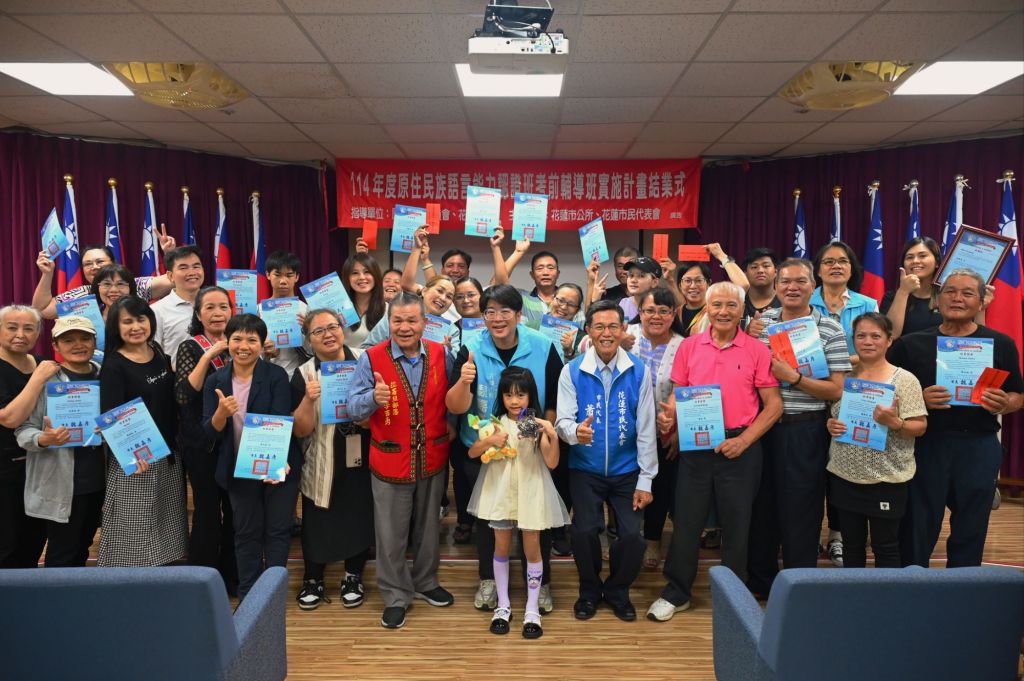 魏嘉彥指出,市公所於去年的族語認證班中,成功協助19位族人朋友取得認證資格,其中初級4人、中級12人、中高級3人;尤其報考太魯閣族語的學員,更在中級認證考試中榮獲榜首佳績,展現族語學習的豐碩成果。期盼今年能吸引更多族人加入學習行列,讓族語在花蓮持續發聲、生根茁壯。