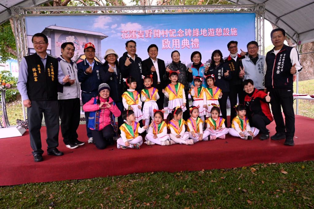 花蓮縣政府為推動文化資產活化並提升社區生活品質,今(7)日上午10時在吉安鄉舉行「吉野開村記念碑綠地遊憩設施啟用典禮」。此次工程透過專業的古蹟保存技術與公共空間營造,將具有百年歷史意義的縣定古蹟與現代遊憩設施完美結合,讓歷史場域轉化為兼具教育與休閒功能的綠色空間,重新融入民眾的日常生活。