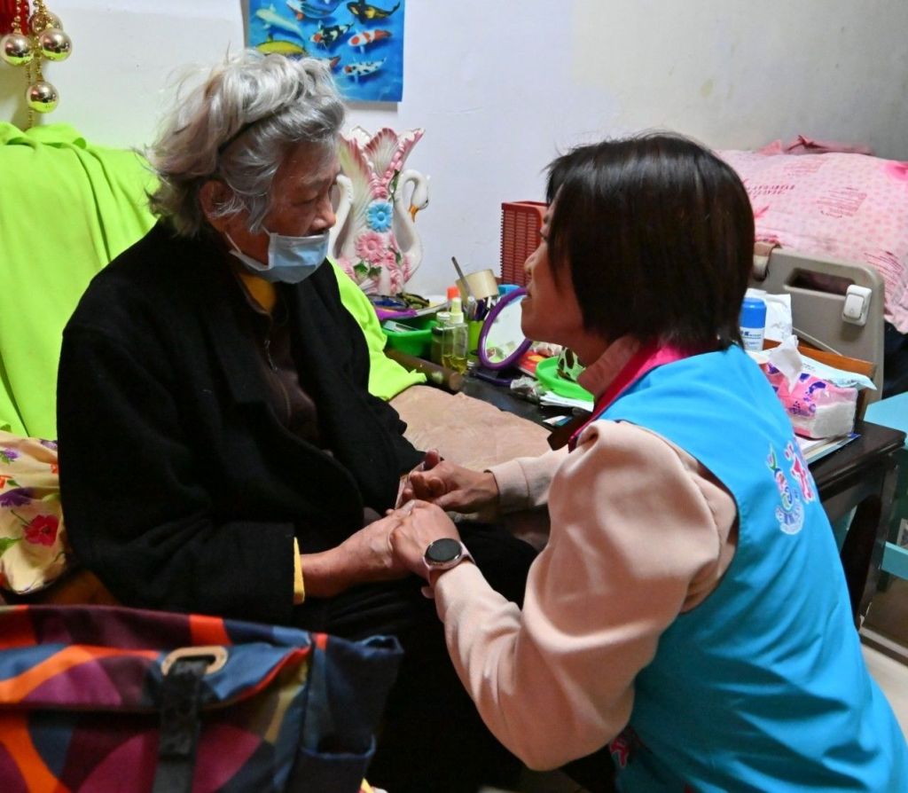 此次探訪的歐姓案主是低收入戶身心障礙植物人,由83歲高齡的母親潘綾子女士獨力照顧。潘奶奶多年來不辭辛勞、日以繼夜守護臥床孩子,堅毅付出的身影令人動容,亦曾榮獲吉安鄉113年度模範母親表揚的她,看到游鄉長親自到訪,止不住訴說的淚水奪眶而出,但也不忘深深感謝公所團隊長年的幫忙。創世基金會也準備了年菜和賀年紅包,親手送到潘奶奶手中,吉安鄉公所貼心準備衛生紙、尿布、濕紙巾等實用照護物資,增添日常實際生活需求用品,以減輕家庭常備負擔。