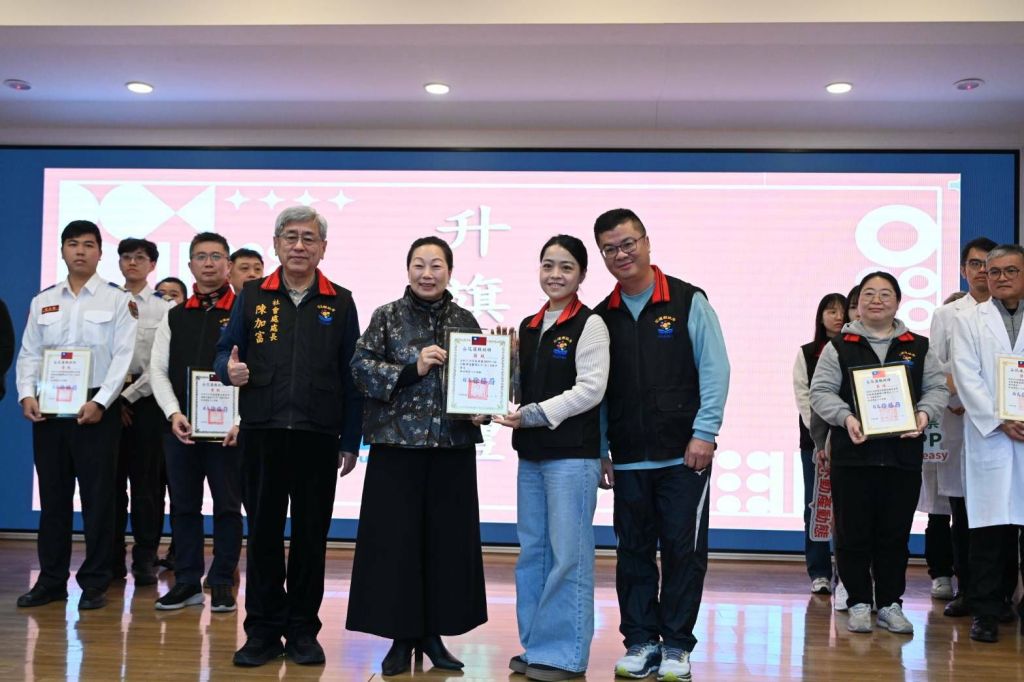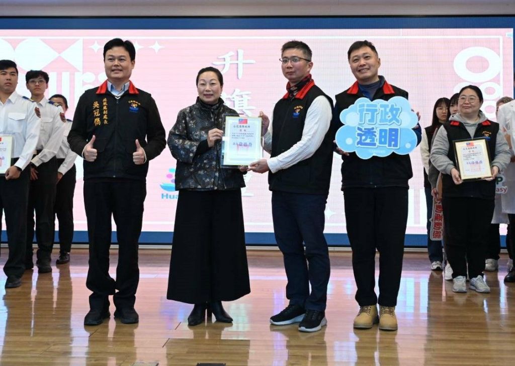 花蓮縣政府今(9)日上午舉行二月份升旗典禮,由縣長徐榛蔚主持,副縣長顏新章、秘書長饒忠及各局處首長、同仁們共同參與。典禮中,徐縣長親自表揚114年12月份、115年1月份「業務達人」及圓夢團隊等優秀代表,並期許同仁們恪盡職守,發揮公務最大效率及效能,同心同德持續為縣爭光。