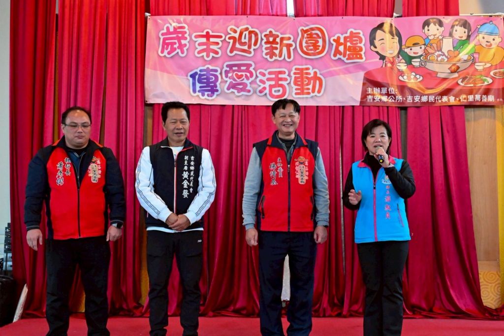 現場許多災戶與家人同往,還有親友歡喜團聚,關心彼此近況,暖心交流溫馨氛圍令人感動。游鄉長偕同來賓逐桌慰問鄉民與賑災英雄,受到家人般的歡迎。她感性表示:「希望大家聚在一起圍爐,感受公所與社會的關心和支持力量。吉安鄉是個大家庭,鄉公所永遠是大家的依靠,此後遇到任何需要幫忙情形,隨時聯繫鄉公所獲得即時協助。」同時感謝社會有愛,和鄉公所、鄉代會攜手實現各項社會福利,打造共榮且充滿希望的生活環境。