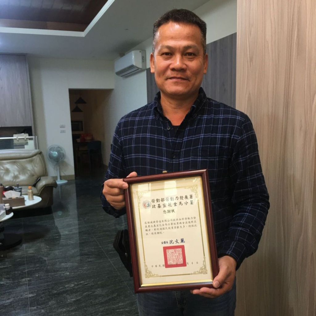 其中,位於南花蓮的威捷營造有限公司,長期落實友善職場理念,成為地方就業的溫暖後盾。現年65歲的阿莉姨,過去因在牧場工作受傷離職,重新求職時屢遭碰壁,在玉里就業中心協助下,透過「五五就業促進獎勵」計畫推介進入威捷營造任職。雇主依其體能狀況彈性調整工作內容與時間,阿莉姨憑著穩定出勤與認真的工作態度深獲肯定,薪資也多次調升,展現中高齡勞動力的價值與競爭力。