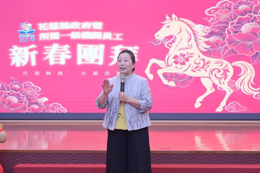 活動在溫馨與歡樂的氣氛中圓滿落幕,徐縣長最後向全體同仁致上新春祝福,祝願大家新年快樂、身體健康、工作順利,並期盼縣府團隊在新的一年持續攜手努力,共同迎向花蓮更美好的未來。