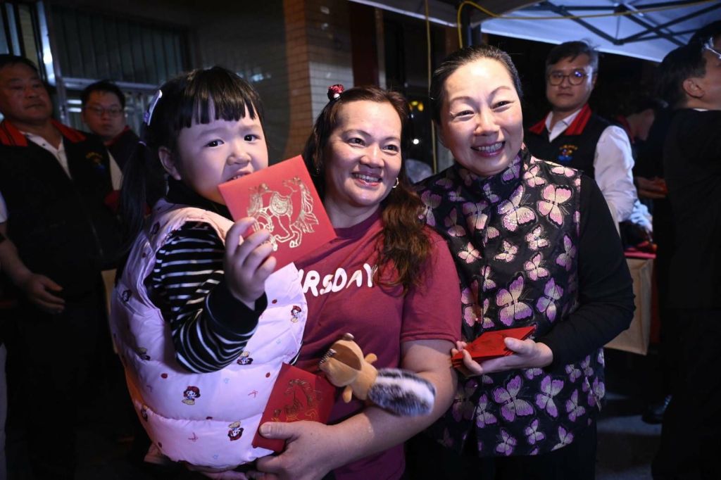 最令民眾期待的「發送福袋」活動正式展開,徐縣長與傅立委逐一將福袋送到民眾手中,不少老人家及小朋友領到提燈後露出開心的笑容,並互道新年快樂。現場人山人海、人聲鼎沸,排隊人潮一路延伸至周邊巷弄,大家爭相握手合照,熱絡的互動為新城鄉注入滿滿的活力與喜悅。