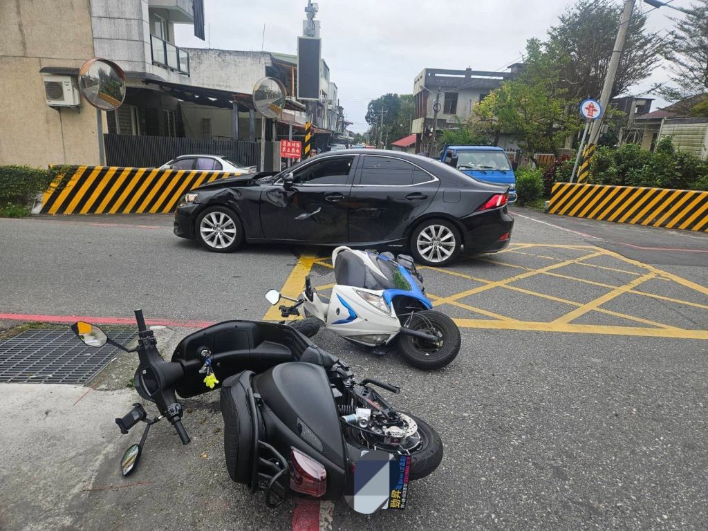 花蓮縣警察局吉安分局太昌派出所(25)日 上午接獲報案,在吉安鄉明義二街與明仁三街口發生交通事故。經員警到場了解,現場為邱姓男子騎乘普通重型機車,與黃姓女子所駕駛之自小客車發生路交口岔撞事故,普機車倒地後進而波及另一輛王姓女子騎乘之微型電動二輪車。