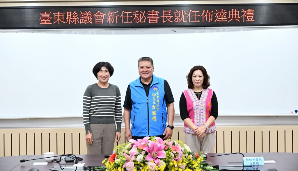 臺東縣議會今6日舉行新任秘書長布達典禮,由議長吳秀華主持,正式布達方銘總接任臺東縣議會秘書長。臺東縣長率縣府一級主管到場觀禮,與多位議員及議會同仁共同見證,場面隆重,展現府會之間良好的互動與合作關係。